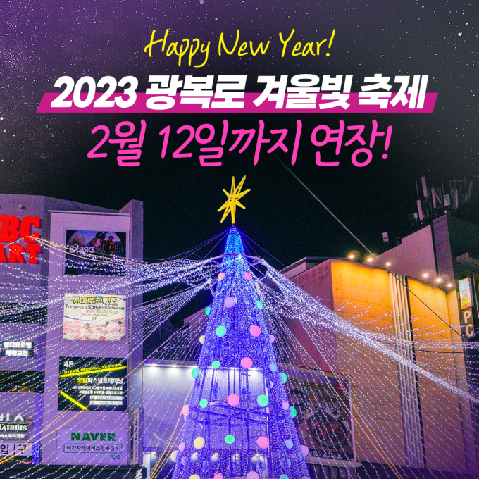 부산 중구는 설 명절을 맞아 내 고향 중구를 찾는 방문객들을 위해 「2023 광복로 겨울빛 축제」를 2월 12일까지 연장 추진한다.