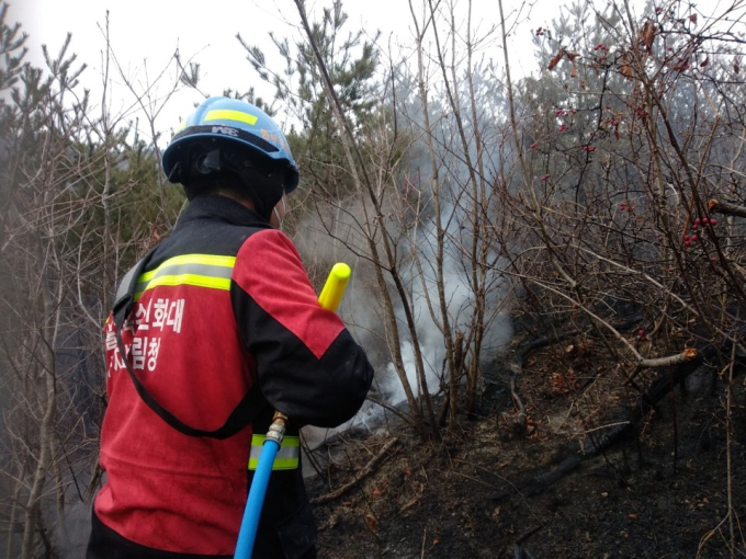 산림당국은 헬기 2대와 차량 16대, 75명의 인력을 투입, 화재 발생 32분 만인 오후 3시 10분께 불을 껐다.