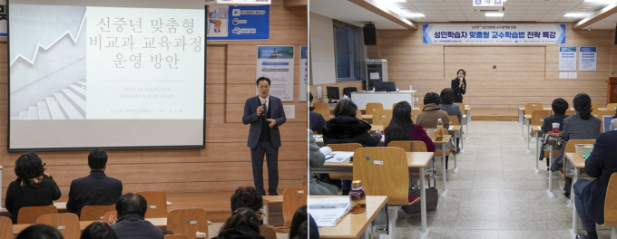 1부 특강에는 부산경상대 김도형 교수가 강사로 나서 ‘신중년 맞춤형 비교과 교육과정 운영 방안’에 대한 강의와 함께 성인학습자를 가르치는 교수자의 마음가짐과 강의 스킬 등에 대해 안내했다.