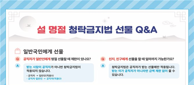 이번 캠페인에서는 설 명절을 앞두고 부정한 선물 수수 예방을 위해 지난해 8월 개정된 청탁금지법 시행령 관련 내용을 알기 쉽게 풀어 쓴 '설 명절 선물 수수 준수사항 Q&A' 홍보물도 배부했다.