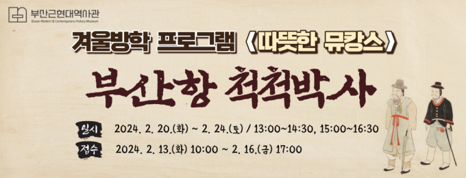 부산근현대역사관은 오는 2월 20일부터 초등학생 4~6학년을 대상으로 겨울방학 프로그램 <따뜻한 뮤캉스>를 운영한다.