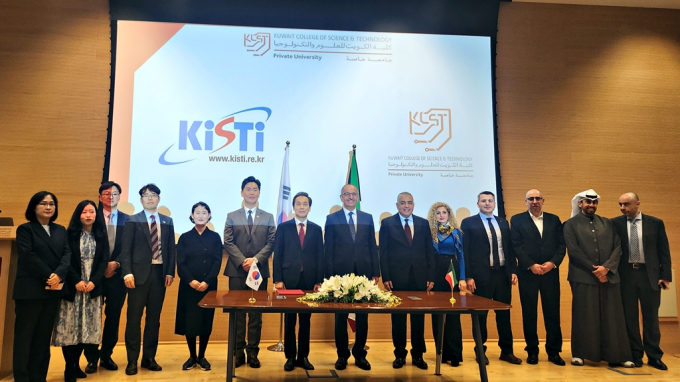 KISTI-쿠웨이트과학기술대학교(KCST) 업무협약 체결식. KISTI 아울러 KCST는 사립대학으로 전자통신공학, 컴퓨터공학 등 첨단기술 분야에서 중동의 과학기술을 선도하는 대학으로 발전을 꾀하고 있다.