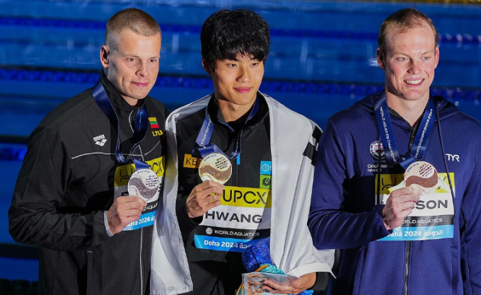 황선우는 한국 수영 최초로 세계선수권 자유형 200m 우승과 대회 3연속 메달이라는 쾌거를 거뒀다. 앞서 2022년 부다페스트 대회에서 2위(1분44초47) 2023년 후쿠오카에서 3위(1분44초42)에 오르며 한국 수영 최초로 ‘세계선수권 2회 연속 메달 획득’을 성공한 바 있다.