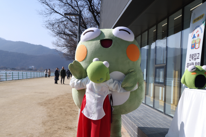 대구 수성문화재단 문화관광사업단은 지난 9일 수성못 관광안내소 앞에서 ‘한복 입고 뚜비랑 찰칵’이란 이름으로 설맞이 가족 체험 프로그램을 운영했다.