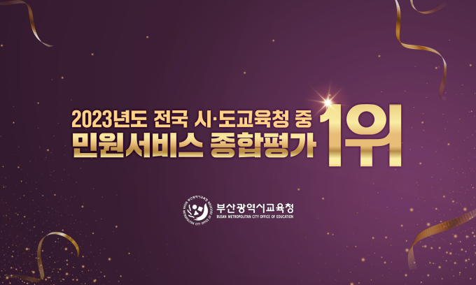 부산광역시교육청은 행정안전부와 국민권익위원회에서 공동 주관한 ‘2023년 민원 서비스 종합평가’에서 17개 시도교육청 가운데 1위를 차지하는 쾌거를 거뒀다고 15일 밝혔다.