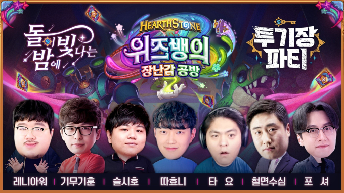 한편 하스스톤 다음 확장팩 위즈뱅의 장난감 공방은 오는 3월20일(한국 시간 기준) 출시 예정으로 예약 구매가 시작됐다. 천재 발명가이자 장난감 제작자인 위즈뱅이 마법 같은 공방의 문을 활짝 열고 아제로스의 모두를 초대할 예정이다. 돌이 빛나는 밤에 방송과 관련한 내용은 공식 블로그 포스트에서 확인할 수 있다.