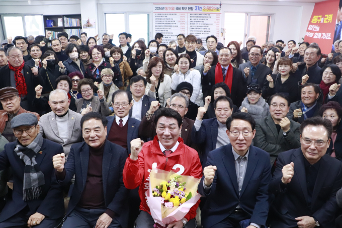 국민의힘 강대식 국회의원(대구 동구을)의 재선을 응원하는 지지자들이 한 자리에 모여 제22대 총선의 압도적인 승리를 기원했다.