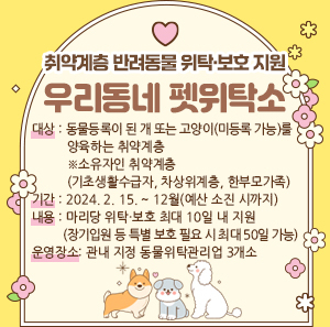 취약계층에 ‘우리동네 펫 위탁소’ 이용료 지원