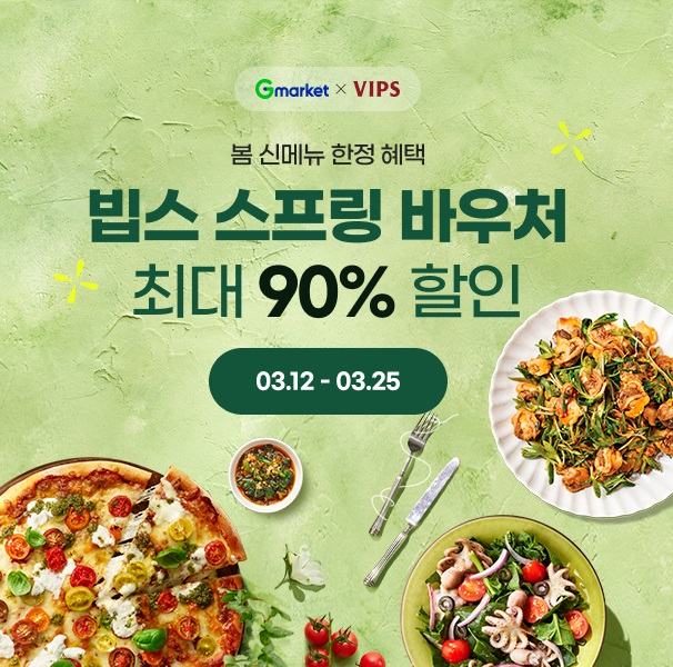 G마켓과 옥션이 12일부터 오는 25일까지 2주간 ‘빕스 1만5000원 스프링 바우처’를 1500원에 단독 특가 판매한다고 12일 밝혔다.