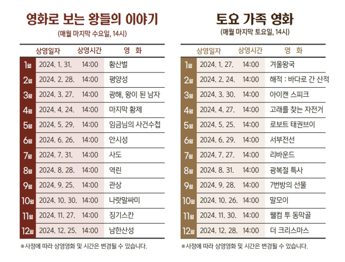 관람은 무료이며, 상영 20분 전부터 각각 200명까지 현장에서 선착순으로 입장할 수 있다.
