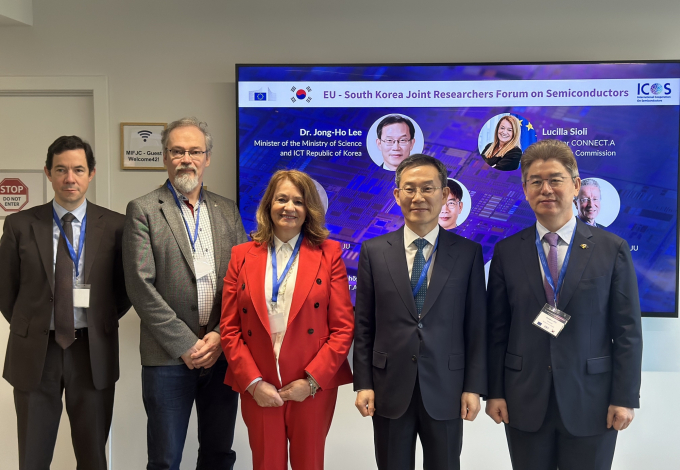 과학기술정보통신부에 따르면 25일(현지시간) 벨기에 브뤼셀에서 ‘제1회 한-EU 반도체 연구자 포럼’이 열렸다. 반도체 분야의 최첨단 기술 동향 및 연구 현황을 공유하고 양국 간 협력 방안을 논의하기 위해 마련됐다. 이종호 과학기술정보통신부 장관도 참석했다.