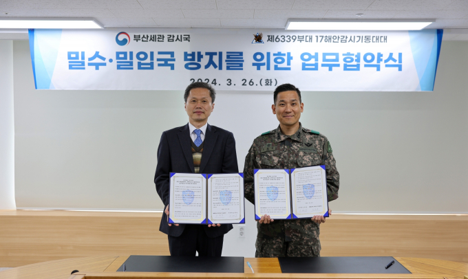 부산본부세관은 육군 부산 여단과 해상·해안 통합방위를 위한 업무협약을 맺었으며, 실무적 처리를 위해 3월 26일 부산세관 대회의실에서 부산세관 감시국과 육군 부산 여단 17해안감시기동대대간 ‘밀수·밀입국 방지를 위한 업무협약(MOU)’을 추가로 체결했다고 밝혔다.