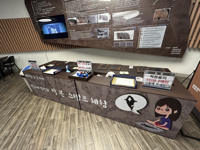 만남의 광장에서 체험할 수 있는 탁본과 스탬프. 기념품으로도 용이하다.윤채라 기자