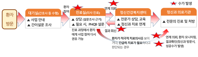 부산시가 전국 최초로 실시하고 있는 이 사업은 비정신과 일차의료기관이 환자를 진료하면서 우울증, 자살 위험성 의심 환자를 발견하면, 의사 상담 또는 선별도구(PHQ-9)를 통해 정신건강 위험군을 선별하고, 지역의 정신의료기관이나 정신건강복지센터로 연계하는 사업이다.