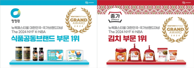 대상은 ‘2024 제15회 대한민국 국가브랜드대상(K-NBA)’에서 ‘종가’와 ‘청정원’이 김치 부문과 식품공동브랜드 부문에서 각각 1위를 수상했다고 3일 밝혔다.