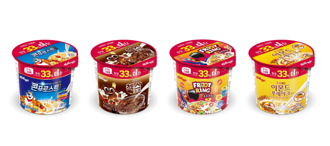 증량된 컵시리얼은 ‘콘푸로스트’, ‘첵스초코’, ‘후루트링’, ‘아몬드 푸레이크’ 등 인기 제품 4종이다. 한 끼 분량의 시리얼이 컵 형태의 용기에 담겨있어 시간과 장소의 제약 없이 간편하게 한 끼 식사가 가능한 것이 특징이다.