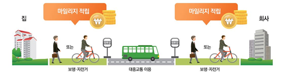 *알뜰교통카드 : 대중교통 이용 시 걷거나 자전거로 이동한 거리에 비례해 마일리지를 최대 20%까지 지급하고, 카드사가 최대 10%의 추가할인을 제공해 대중교통비를 최대 30%까지 절감할 수 있는 교통카드