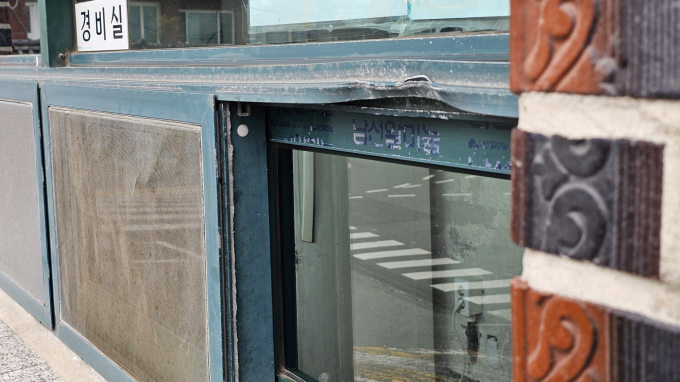 돌덩이에 찌그러진 창틀.윤채라 기자