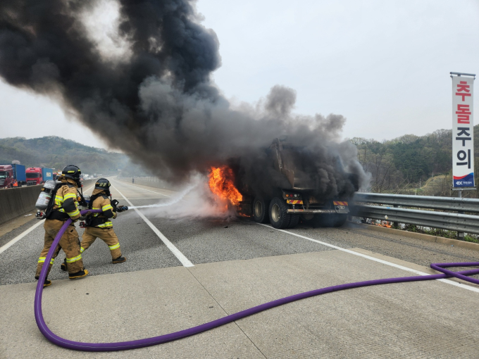 고속도로 달리던 덤프트럭서 불…46분 만에 진화