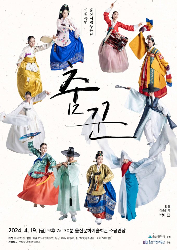 울산시립무용단이 4월 19일 오후 7시 30분에 울산문화예술회관 소공연장에서 기획공연 <춤꾼>을 선보인다.