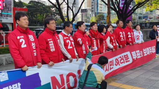 4월9일 부산광역시청 앞 합동유세.국민의힘 부산시당 선거기간 동안 전국적인 관심을 끌었던 부산의 지역구를 보면 상당수 여론조사에 앞서는 집계를 기록했던 연제구의 진보당 노정현 후보는, 국민의힘 김희정 후보에게 패했다. 김희정 당선인은 3선 의원으로 국회 상임위원장도 바라보게 됐다.