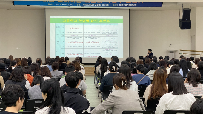 구미시는 13일 진학진로지원센터에서 학생과 학부모 300여명을 대상으로 2024학년도 대입 대비 학생기록부 관리 특강을 개최했다.