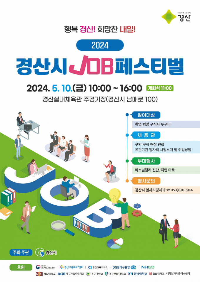 경산시는 오는 10일 경산실내체육관에서 ‘2024년 경산시 잡(JOB) 페스티벌’을 개최한다.