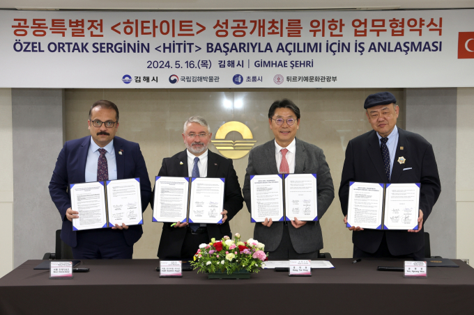 김해시가 16일 김해시청에서 국립김해박물관과 튀르키예 초룸시, 튀르키예 문화관광부와 특별전인 '히타이트'의 공연을 위해 업무협약을 맺었다. 히타이트 유물 국내 전시는 이번이 처음이다.