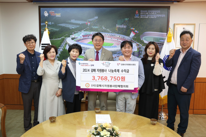 이 성금은 '2024 김해 자원봉사 나눔축제'에서 지역 내 기업과 공공기관 직원들이 1인 1기부로 모은 물품을 판매한 돈이다.