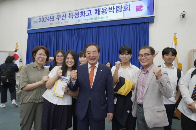 하윤수 부산광역시 교육감은 29일 오후 3시 부산광역시청 1층 로비 일원 및 대회의실에서 개최된‘2024 부산 특성화고 채용박람회’를 직접 찾아 참여기업체 담당자 및 직업계고 학생·교사를 격려했다.