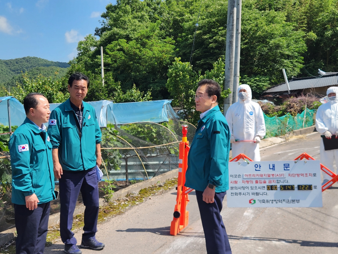 아울러 인근 도로 3곳에 이동통제초소를 설치하고 축산차량 출입 통제 및 소독 방역에 나섰으며, 발생 농장 10㎞ 이내의 야생멧돼지 포획 작업도 펼친다.
