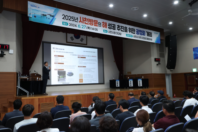 경남 사천시는 사천시관광진흥협의회(위원장 서원호)와 공동으로 시청 대강당에서 시민과 전문가들이 참가한 가운데 '2025년 사천방문의 해' 추진을 위한 공청회를 개최했다.