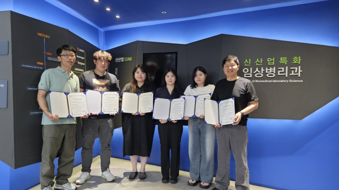 학술대회는 임상병리학과 김소진 교수, 조장은 교수가 지도했으며 총 6명[강대청(잠복결핵감염 진단의 최신동향), 김현지(대구지역 유기동물보호 센터의 개와 고양이에서 포도상 구균의 분리 및 동정), 박미정(대구, 전북 군산 지역 유기동물보호 센터의 개와 고양이에서 피부사상균 감염 조사), 박지현(손에서 분리된 감염성 질환을 야기하는 세균의 동정), 박진성(MALDI-TOF MS를 이용한 계란에 오염된 미생물의 분리동정), 정명기(EDTA 검체 보관온도와 시간에 따른 적혈구 지수의 변화)]의 바이오헬스융합학과 바이오진단임상병리전공 재학생이 우수포스터상 수상의 영예를 안았다.