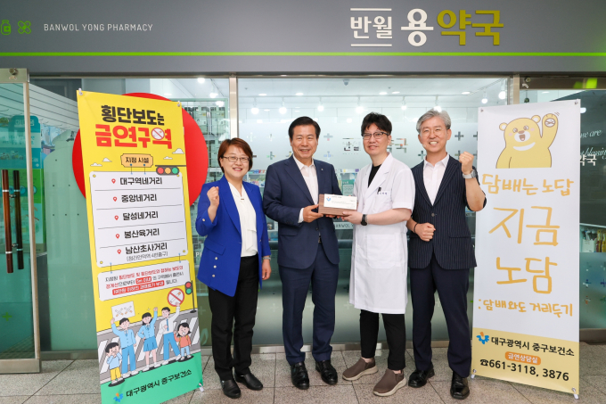 이번 금연약국 지정은 봉산육거리, 남산초사거리, 달성네거리에 있는 약국 5곳으로 지난달 25일 봉산육거리 인근 ‘반월용약국’을 제1호 금연약국으로 선정하고, 달성네거리 인근 ‘박애약국’ 외 3곳을 금연약국으로 지정했다.