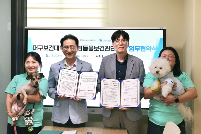 교육에 앞서 대구보건대 산학협력단과 국립대구청소년디딤센터는 동물교감교육을 통한 지역 인재 동반성장 네트워크 구축 업무협약을 체결했다.