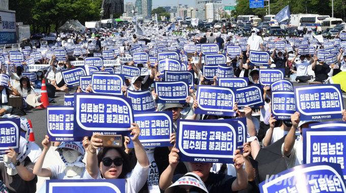 전공의와 의대생은 의대 증원과 필수의료 정책 패키지 백지화 등을 요구하며 등을 돌렸다. 의과대학·의학전문대학원학생협회(의대협)에 따르면 내년도 의사 국가시험 응시 예정자 중 95.5%가 응시를 거부했다. 전국 40개 의대 본과 4학년 3015명 중 2773명이 국가시험에 필요한 개인정보 제공 동의서를 학교 측에 제출하지 않은 것이다.