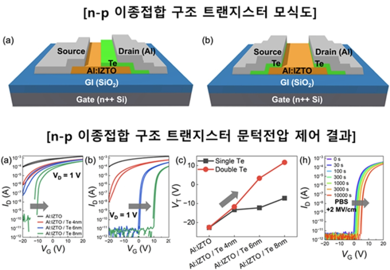 특히 패시베이션층이 없어도 이종접합 구조에서 텔레늄 두께를 조절해 n형 트랜지스터의 안정성을 개선할 수 있었다.
