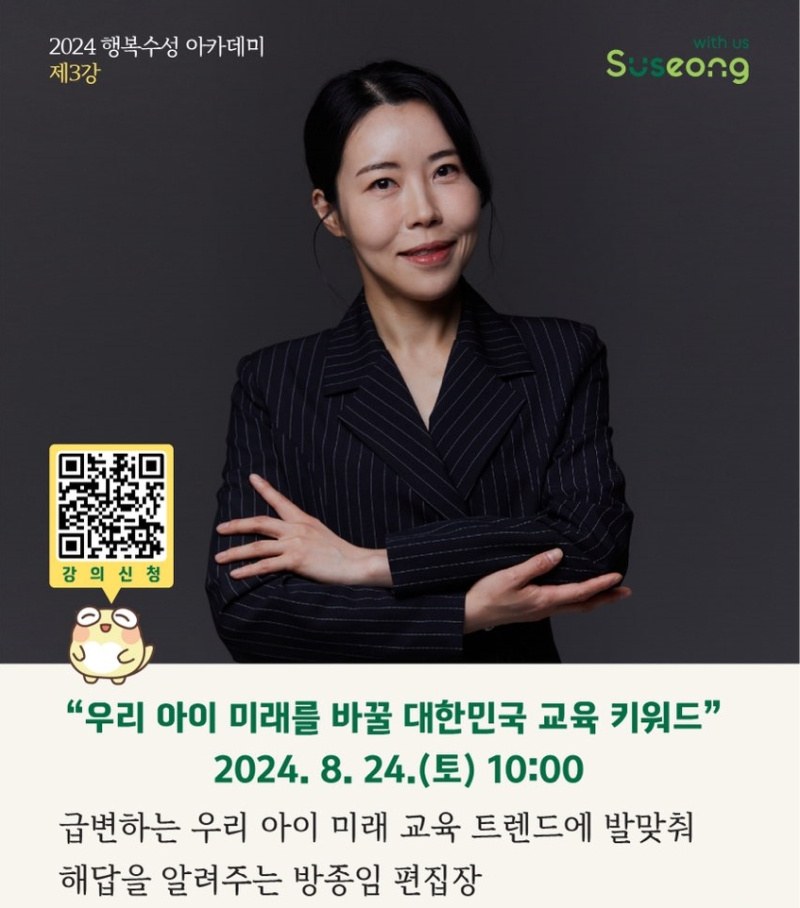 대구 수성구는 오는 24일 수성대 젬마관 101호에서 2024 행복 수성 아카데미 제3강 ‘우리 아이 미래를 바꿀 대한민국 교육 키워드’ 특강을 개최한다.