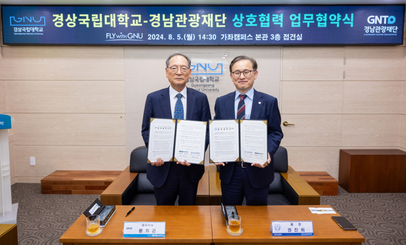 권진회 총장은 "경남을 대표하는 국가거점국립대학으로서 지역특화 관광산업 분야 개발 및 육성을 위해 대학의 전문적인 인적·물적 역량을 지속적으로 제공할 것"이라며 "양 기관의 긴밀한 협력으로 지역사회 선도 및 상생 발전을 기대한다"고 말했다.