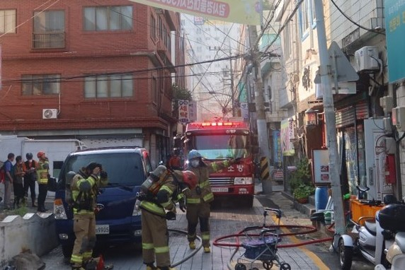 부산 사하구 신평동 주택에서 화재가 발생해 주택 2층 거주자 등이 긴급 대피했다.