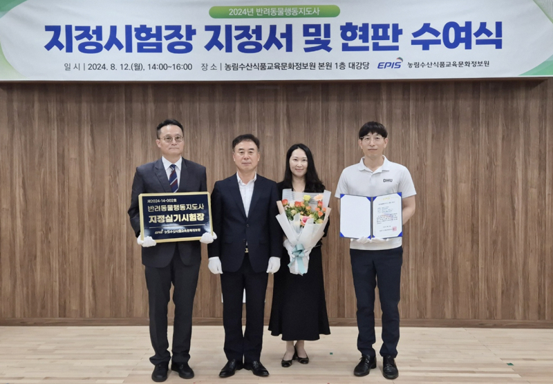 대구한의대학교가 전국 4년제 대학 중 유일하게 반려동물행동지도사 국가자격시험장(필기·실기)으로 선정되면서 지난 12일 세종시 농림수산식품교육문화정보원(농정원)에서 지정시험장 지정서 및 현판을 받았다.