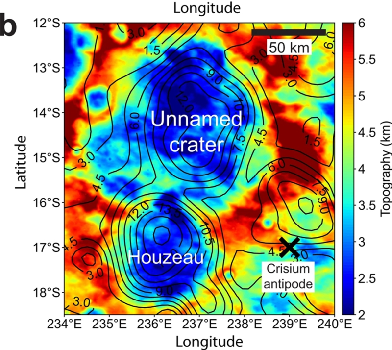 이는 바로 밑에 있는 ‘후조 충돌구’와 같이 충돌구 내외부의 자기장 차이를 보여 많은 연구가치를 갖는다.