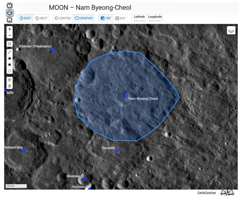 달에 조선시대 학자의 이름을 딴 ‘남병철 충돌구(Nam Byeong-Cheol Crater)’가 생겼다.