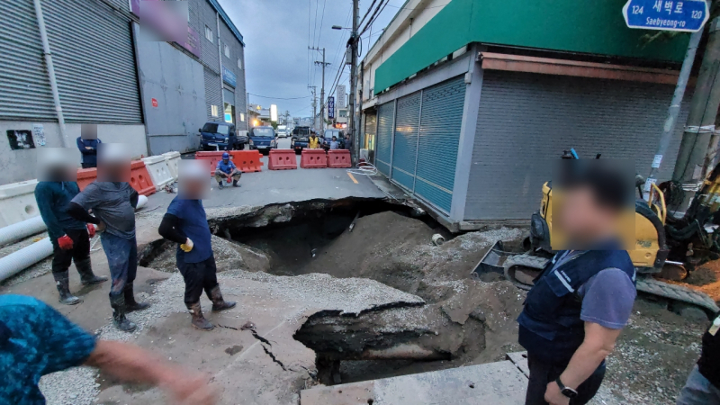 부산 사상 새벽시장 인근서 싱크홀 발생···지름 5m 규모