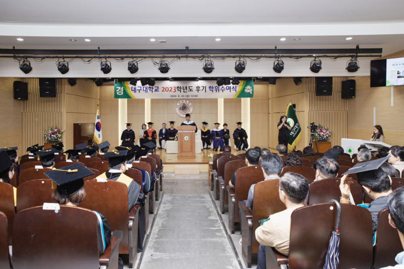 대구대는 지난 23일 경산캠퍼스 성산홀(본관) 강당에서 ‘2023학년도 후기 학위수여식’을 개최했다.