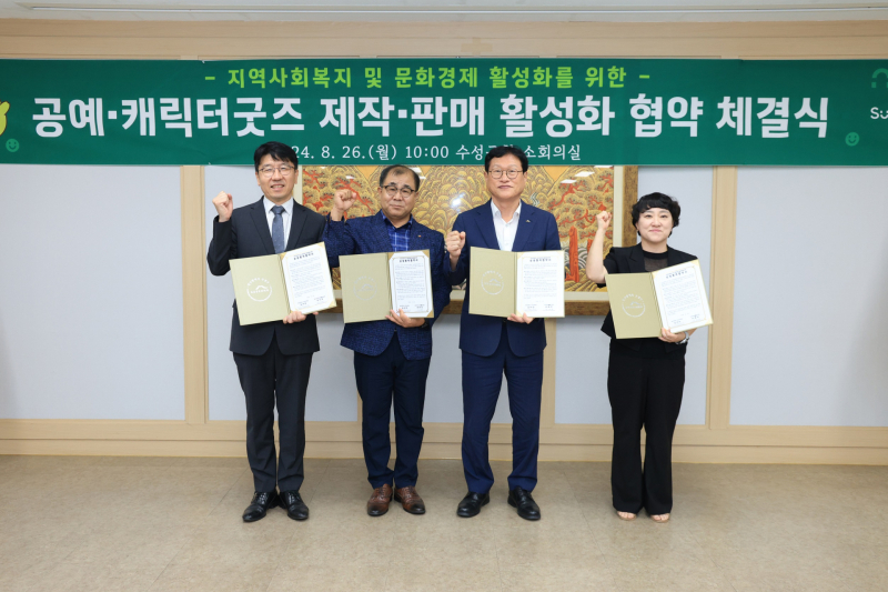 대구 수성구는 지난 26일 지역 3개 복지기관과 공예·캐릭터 굿즈 제작·판매 활성화 협약을 체결했다.