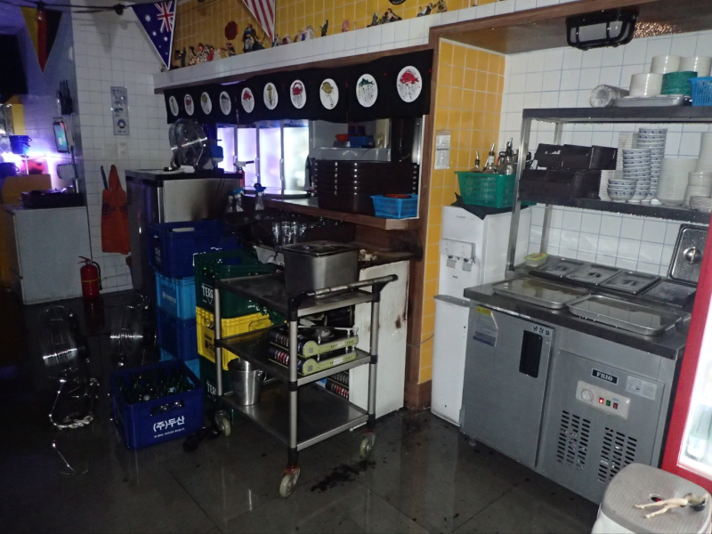 소방시설이 작동한 식당 화재 현장.부산소방재난본 30일 새벽 1시11분 쯤에는 부산 수영구 광안동 20층 주상복합건물 식당에서 휴대용 가스버너 취급 부주의로 불이 났다.