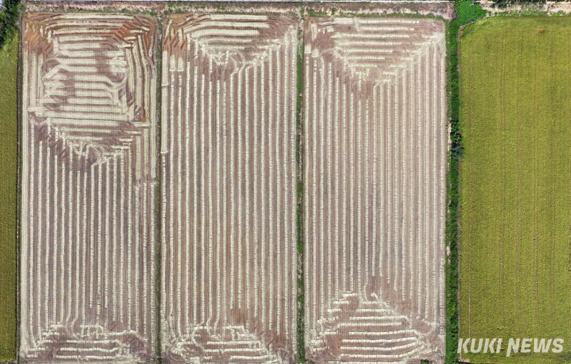 가을걷이가 끝난 논바닥이 마치 한 폭의 추상화처럼 보인다.