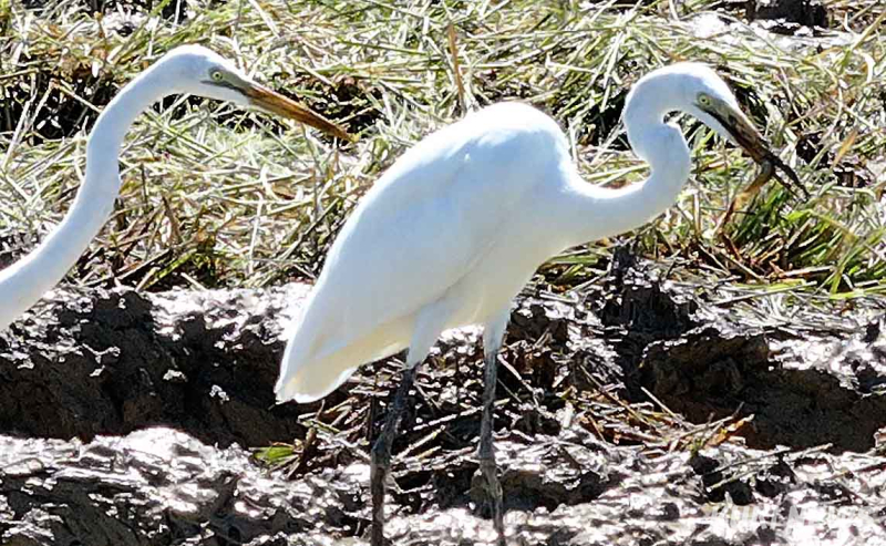 - 백로 무리, 모처럼 통통한 미꾸라지 포식