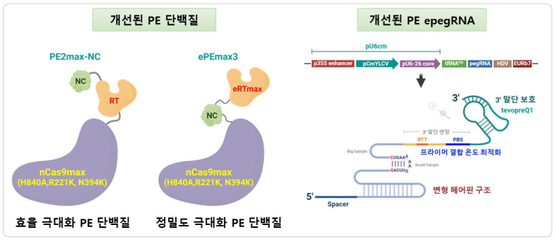 연구팀은 다양한 유전자가위 합성생물학 재설계를 통해 프라임 에디팅 효율을 극대화해 토마토 및 애기장대에서 다음 세대로 유전되는 유전자교정라인을 높은 효율(최대 형질전환 3개체당 1개체의 성공 효율)로 확보했다.